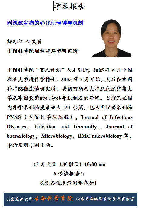生命科學學院學術報告-固氮微生物的趨化信號轉導機制