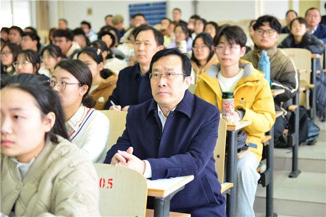 徐劍波坐在學(xué)生中間,專注聽講,不時記錄,仔細觀察授課教師的上課特點與同學(xué)們的聽課情況。課后,徐劍波與課堂師生親切交流,對任課教師和廣大同學(xué)新學(xué)期展現(xiàn)出的精神面貌給予充分肯定。他說,《概率論與數(shù)理統(tǒng)計》是農(nóng)科類學(xué)生掌握專業(yè)知識技能必修的重要課程,張老師的講課條理性強,內(nèi)容充實,特別是能夠結(jié)合生活中的實際案例,對重點知識進行深入講解。他希望,學(xué)校廣大教師要進一步增強“立德樹人、強農(nóng)興農(nóng)”的責(zé)任感和使命感,不斷豐富課堂教學(xué)內(nèi)容、組織形式和教學(xué)手段,不斷提高課堂教學(xué)效果,同時將專業(yè)知識與思政教育有機結(jié)合,推動價值引領(lǐng)、知識傳授與能力培養(yǎng)緊密融合,達到“潤物無聲”的育人效果。他勉勵廣大青年學(xué)生要珍惜大學(xué)時光,穩(wěn)扎穩(wěn)打?qū)W好專業(yè)知識,不負時代、不負韶華,不負黨和人民的殷切期望,努力成為實現(xiàn)中華民族偉大復(fù)興的先鋒力量。