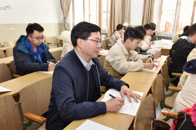 冷暢儉邊聽邊認真記錄,還不時地觀察學生們聽課情況。課間,冷暢儉與師生親切交談,對課堂教學效果和學生們課堂表現給予充分肯定,鼓勵教師們要不斷提升業務能力和水平,積極探索好的教學方式、方法,豐富課堂教學內容,讓學生動起來、課堂活起來、課程立起來,激發學生學習主動性和自覺性,不斷提高課堂教學效果,并叮囑學生要把個人理想追求融入國家和民族事業中,珍惜大學學習機會,心無旁騖求知問學,不僅學好知識,也要學以致用,逐步增強自己分析問題、解決問題的能力,努力成長為對國家、對人民、對社會有用的人才。