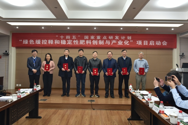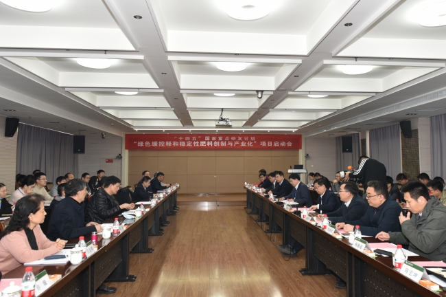 3月4日,“十四五”國家重點研發計劃“綠色緩控釋和穩定性肥料創制與產業化”項目啟動會在山東農業大學召開。農業農村部科技發展中心、山東省科技廳等單位領導,中國工程院院士、中國農科院農業資源與農業區劃研究所周衛研究員等7位項目咨詢專家組成員出席會議。山東農業大學黨委副書記、校長冷暢儉與會致辭并為專家組成員頒發聘書。黨委常委、副校長李向東主持啟動儀式。