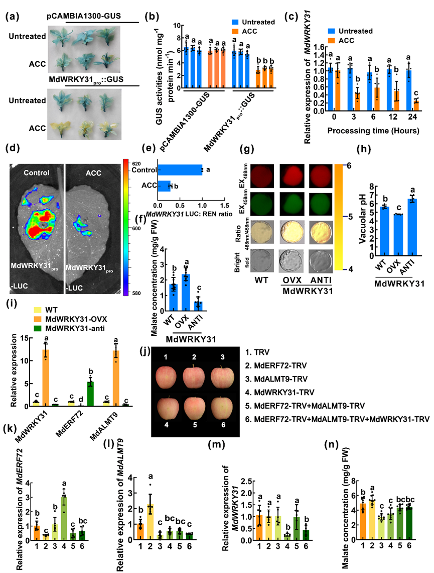 圖1 乙烯誘導的WRKY轉錄因子MdWRKY31提高蘋果果實中蘋果酸含量