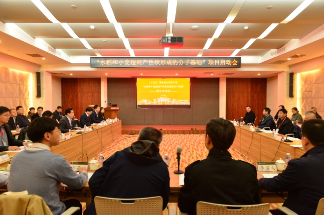 3月17日,國家重點研發(fā)計劃“水稻和小麥超高產(chǎn)性狀形成的分子基礎”項目在山東農(nóng)業(yè)大學啟動。中國農(nóng)村技術開發(fā)中心、山東省科技廳等單位領導,中國科學院遺傳與發(fā)育生物學研究所李家洋院士,中國科學院分子植物科學卓越創(chuàng)新中心韓斌院士,中國農(nóng)業(yè)大學孫其信教授,華南農(nóng)業(yè)大學儲成才教授,中國農(nóng)科院生物技術所李新海研究員,北京大學現(xiàn)代農(nóng)學院劉春明教授,中國農(nóng)科院作物科學研究所何中虎研究員等7位項目咨詢和指導專家出席啟動會。中國水稻研究所錢前院士等20位項目骨干參加會議。山東農(nóng)業(yè)大學黨委書記徐劍波到會致辭,黨委副書記、校長冷暢儉主持啟動儀式,黨委常委,副校長李向東、王勇,小麥育種全國重點實驗室主任張憲省教授出席活動。