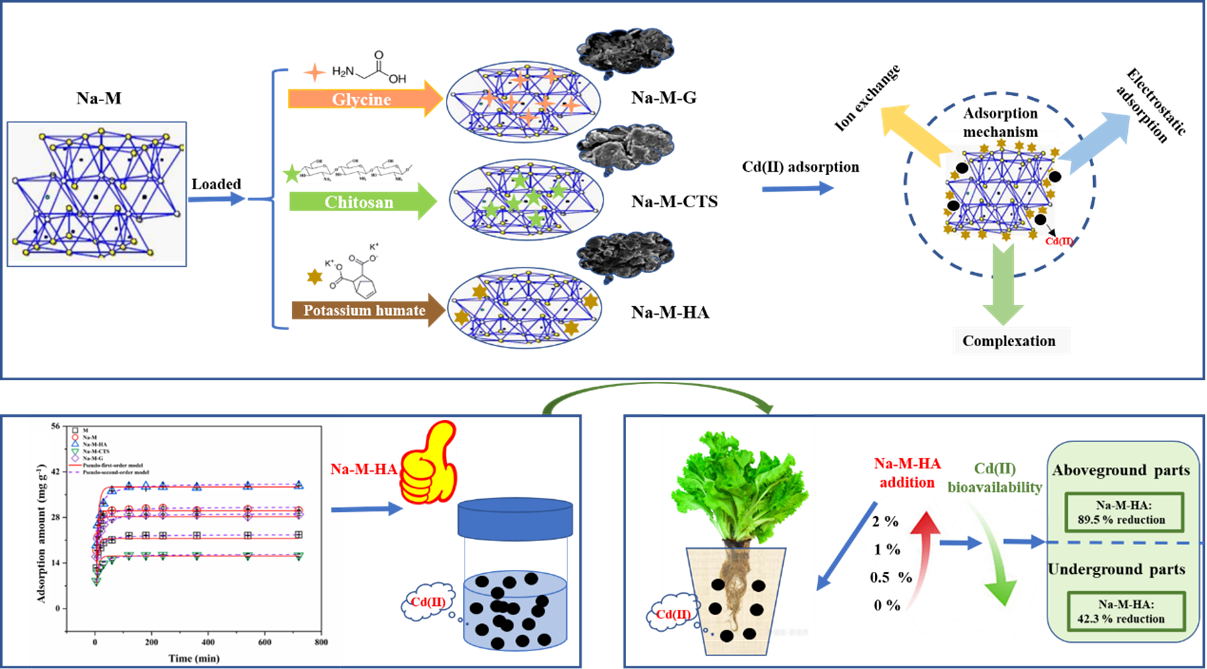 本研究制備的負(fù)載腐植酸鉀蒙脫石Na-M-HA是一種綠色、低成本、性能優(yōu)良的Cd穩(wěn)定吸附劑,在修復(fù)受Cd污染土壤中可有效降低Cd的生物有效性,從而降低Cd在食物鏈中的轉(zhuǎn)移風(fēng)險(xiǎn),減弱Cd污染對(duì)人類健康的威脅。