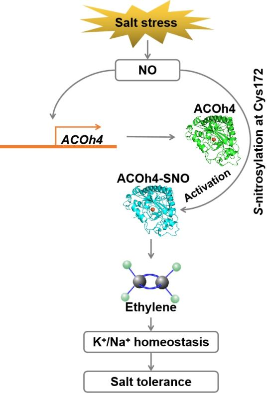 (4)鹽堿誘導的NO可通過S-亞硝基化ACOh4的Cys-172來提高其酶活性,促進乙烯合成。
