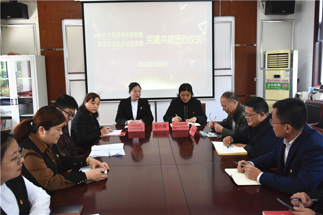 5月6日上午,山東農業大學離退休干部黨委與泰前街道農大社區黨委黨建共建簽約儀式在農大社區二樓會議室舉行。離退休干部黨委、離退休工作處有關負責同志、黨員代表,農大社區兩委成員及黨員代表參加活動。