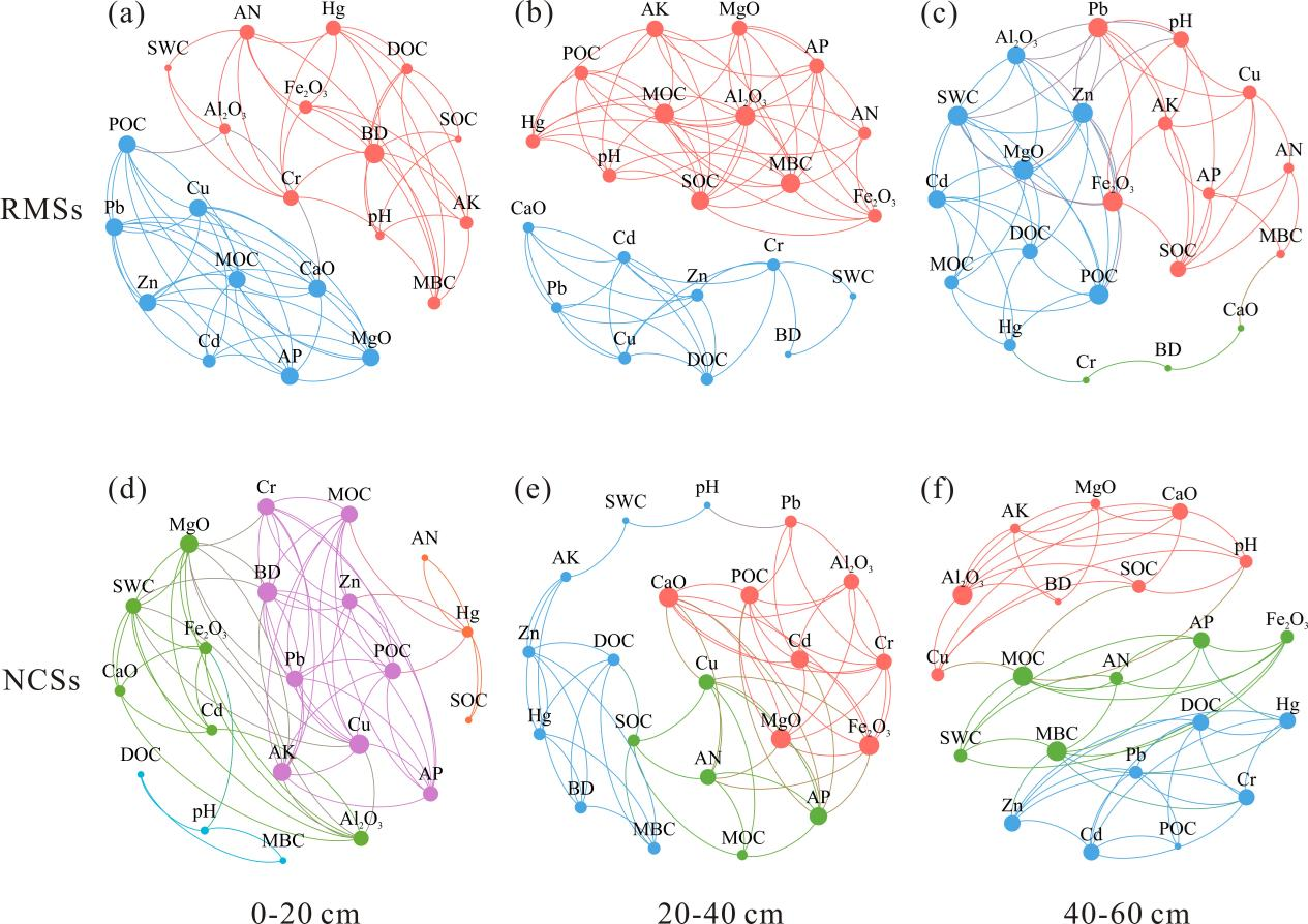 近日研究應用復雜網絡理論探索了復墾農田土壤重建過程中特殊的土壤性質關系網絡及其關鍵因素指標,并通過與未塌陷農田土壤的對比闡釋了煤矸石充填復墾農田土壤重建和重金屬分布的內在機理。