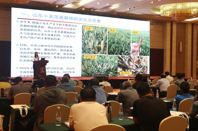 山東省農技推廣中心,山東省農科院,山東農業大學農學院、植保學院負責人和專家代表與泰安市各縣市區農技推廣中心、植保站及各縣市種糧大戶120余人參加會議。