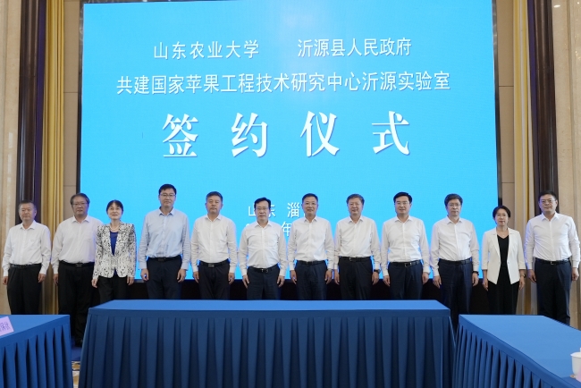 9月23日,山東農(nóng)業(yè)大學與淄博市共建國家蘋果工程技術研究中心沂源實驗室簽約儀式舉行。淄博市委書記馬曉磊,山東農(nóng)業(yè)大學黨委書記徐劍波出席簽約儀式并講話。山東省發(fā)展改革委二級巡視員王艷莉,淄博市委常委、副市長李新勝,淄博市委常委、秘書長李俊杰,市政協(xié)黨組成員、副主席閆桂新,山東農(nóng)業(yè)大學黨委常委、副校長王勇,沂源縣委書記邊江風,縣委副書記、縣長張濤出席活動。
