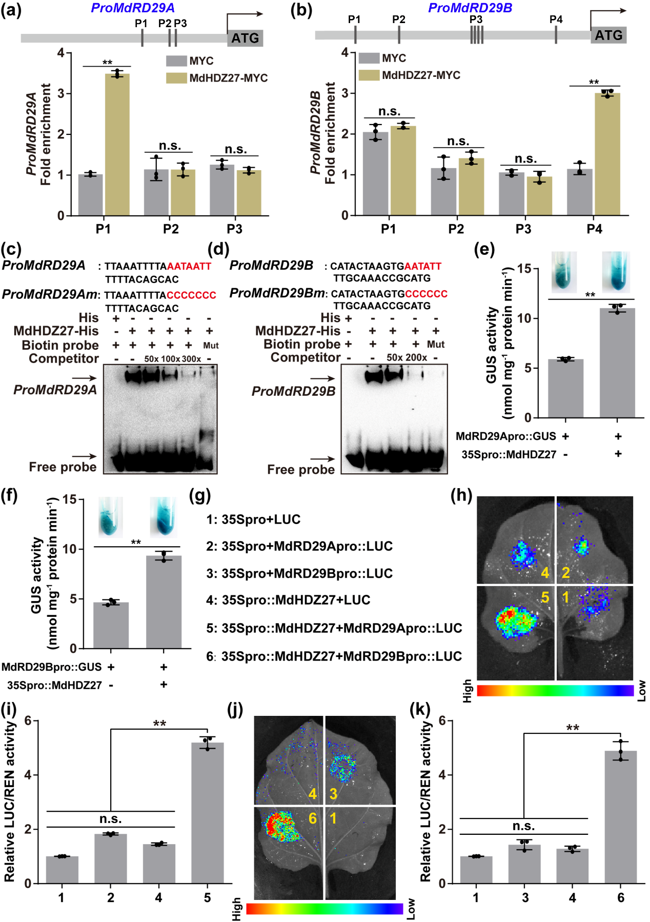 圖1 MdHDZ27激活MdRD29A和MdRD29B表達