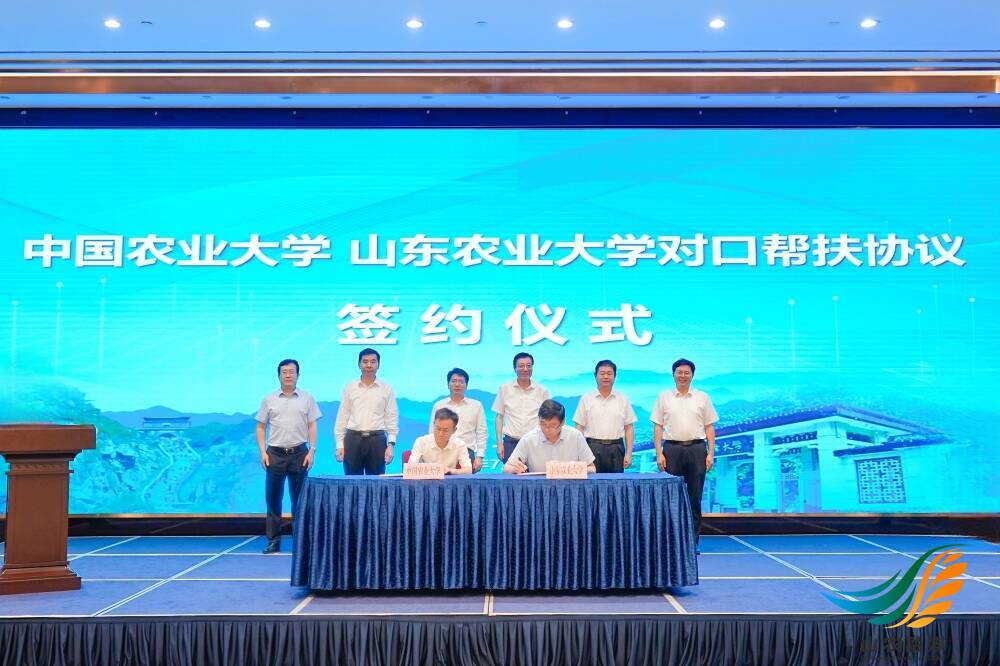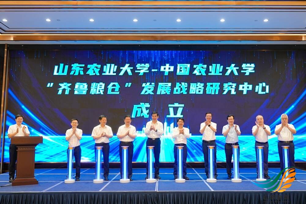 山農(nóng)融媒7月25日訊 7月24日,山東農(nóng)業(yè)大學(xué)與中國農(nóng)業(yè)大學(xué)舉行作物學(xué)學(xué)科與更高水平“齊魯糧倉”建設(shè)研討會,簽署對口幫扶協(xié)議,揭牌啟動山東農(nóng)業(yè)大學(xué)-中國農(nóng)業(yè)大學(xué)“齊魯糧倉”發(fā)展戰(zhàn)略研究中心。山東省政府副省長鄧云鋒出席會議并講話,第十四屆全國人大常委、中國農(nóng)業(yè)大學(xué)校長、中國工程院院士孫其信,山東農(nóng)業(yè)大學(xué)黨委書記徐劍波出席會議并致辭。學(xué)校黨委副書記、校長冷暢儉主持會議。