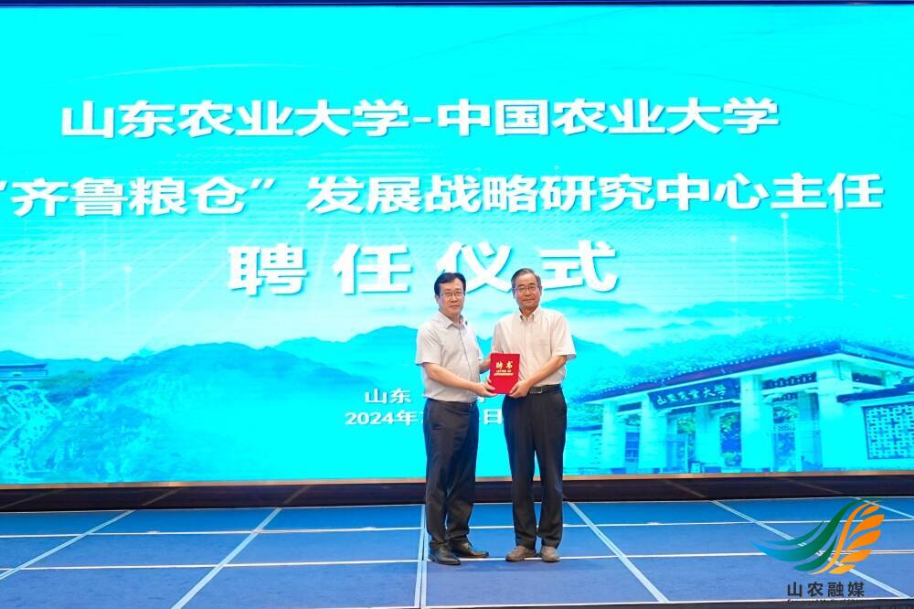 會上,徐劍波為中國農(nóng)業(yè)大學(xué)教授、國家農(nóng)業(yè)科技戰(zhàn)略研究院院長高旺盛頒發(fā)山東農(nóng)業(yè)大學(xué)-中國農(nóng)業(yè)大學(xué)“齊魯糧倉”發(fā)展戰(zhàn)略研究中心主任聘書。高旺盛教授作發(fā)展戰(zhàn)略主旨報告,從宏觀農(nóng)業(yè)與發(fā)展戰(zhàn)略規(guī)劃、農(nóng)業(yè)科技政策等方面出發(fā),深入分析作物學(xué)學(xué)科發(fā)展趨勢和“齊魯糧倉”建設(shè)的戰(zhàn)略意義并提出一系列具有前瞻性和可操作性的建議。