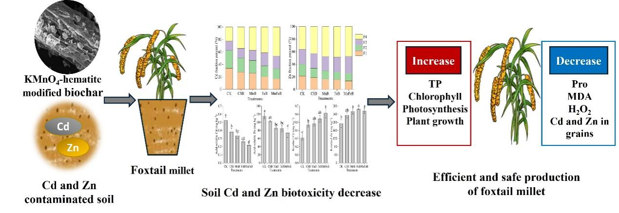 近日,資源與環(huán)境學(xué)院諸葛玉平教授團(tuán)隊(duì)在《Journal of Hazardous Materials》發(fā)表了題為“Biochar with KMnO4-hematite modification promoted foxtail millet growth by alleviating soil Cd and Zn biotoxicity”的研究論文。山東農(nóng)業(yè)大學(xué)為論文的第一完成單位,博士研究生康錫瑞為該論文的第一作者,諸葛玉平教授和婁燕宏教授為該論文的通訊作者。