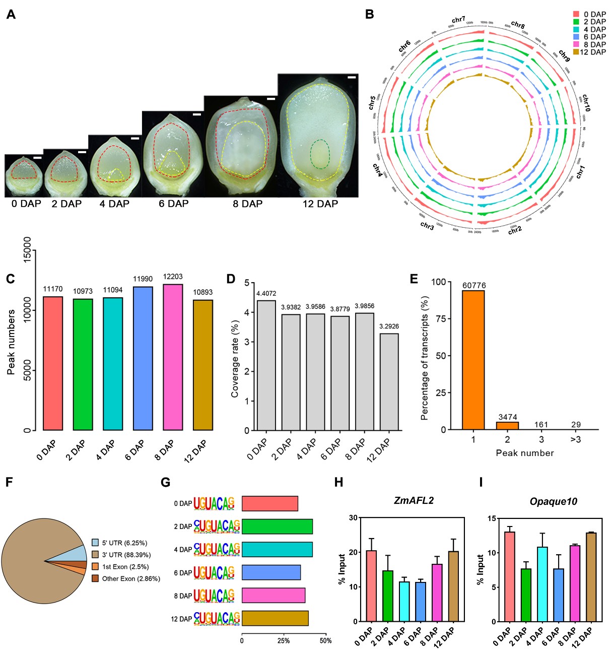綜上所述,該研究構建了玉米籽粒發育早期的m6A甲基化修飾圖譜,并揭示了多個時期玉米籽粒中m6A甲基化修飾的基本特征及潛在的生物學功能,為下一步深入研究m6A甲基化修飾在籽粒發育過程中的生物學功能提供重要資源,為深化人們對種子早期發育分子機理的理解提供了新的視角和參考。