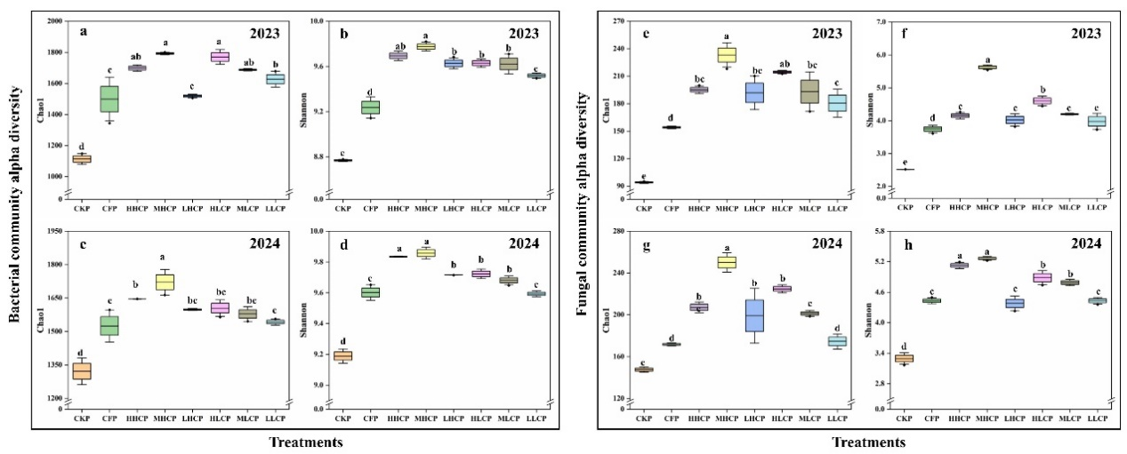 本研究通過兩年田間試驗(2023-2024年),結合16S rRNA和ITS測序技術和結構方程模型(SEM)解析了施用控釋磷肥對土壤微生物、土壤氮-磷循環酶活性、土壤肥力和大豆生產力的影響及其相互作用關系。結果表明,施用控釋磷肥增加了土壤細菌和真菌群落多樣性及有益微生物(Bradyrhizobium,Lysobacter,Sphingomonas和Flavisolibacter)的相對豐度,提高了土壤氮、磷循環酶的活性。在土壤微生物和養分循環酶的作用下,土壤肥力和大豆生產力得到提高。其中,大豆產量提高1.7%~12.9%,大豆磷肥利用效率提高1.1~22.5個百分點。研究結果為磷肥高效利用和大豆可持續生產提供了理論依據和積極貢獻。