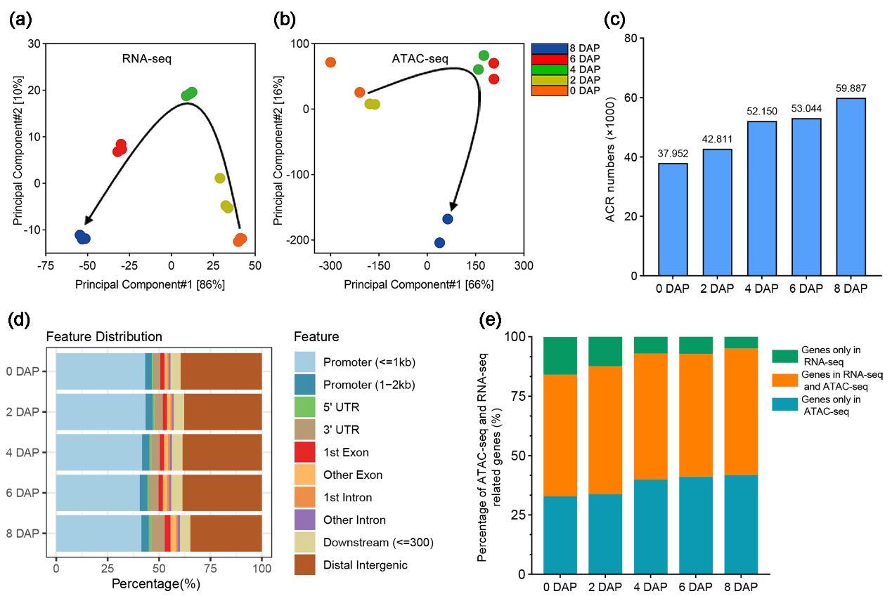 基因表達受順式調控元件(CREs)和反式作用因子(如轉錄因子)協同調控。在玉米等真核生物中,CREs通常富集于染色質可及性區域(ACRs)——這些區域如同“基因開關”,其動態開放/閉合直接影響發育進程。然而,玉米種子早期發育中ACRs的變化規律仍不清楚。