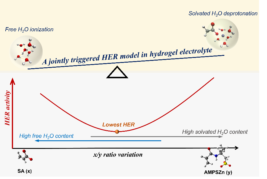 水凝膠是一類高粘度、高彈性的非均質軟材料,具有結構可調性、功能拓展性、粘附能力以及穩定性,在儲能、醫藥、環境等領域展現出獨特的性能優勢和應用潛力。近日,針對水凝膠電解質中存在的析氫反應(HER)顯著降低體系電化學穩定性且不同析氫階段的主導因素尚不清楚問題,22級碩士研究生秦碩在胡媛媛副教授、楊凱教授指導下利用不同陰離子基團氫鍵受體位點數差異,提出一種混合陰離子梯度調節策略,揭示了Zn2+溶劑化水去質子化和自由水電離共同觸發的HER模型。結合實驗表征和理論計算,證實了溶劑化水和自由水分別是決定HER起始電位和析氫強度的關鍵變量。通過凝膠骨架陰離子調節可以削弱起始電位和析氫強度,實現更好的HER抑制效果。此外,陰離子加速的Zn2+脫溶動力學和優化的凝膠-負極界面,顯著增強了Zn的化學可逆性。作為概念驗證,Zn/PAHE/LFP電池表現出優異的容量保持率、倍率性能、長循環壽命(>10000次循環)和寬溫度適應性(-20-60 oC)。該研究為先進水凝膠電解質的開發提供了重要指導,并推動了高穩定性水系鋅金屬電池的實用化進程。