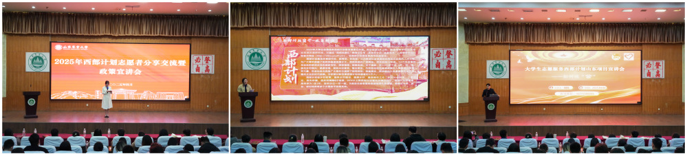 4月2日和4月11日,學校分別在泮河校區報告廳舉辦西部計劃志愿者分享交流暨政策宣講會。活動中,校團委工作人員詳細解讀招募條件、服務內容及政策保障,服務新疆、陜西等地的優秀志愿者通過生動的故事與真實的思考,分享扎根基層的感悟與成長。互動環節中,同學們就服務地選擇、職業規劃等問題積極提問,現場氣氛熱烈。活動有效激發了青年學子投身西部的熱情,為后續招募工作奠定基礎。