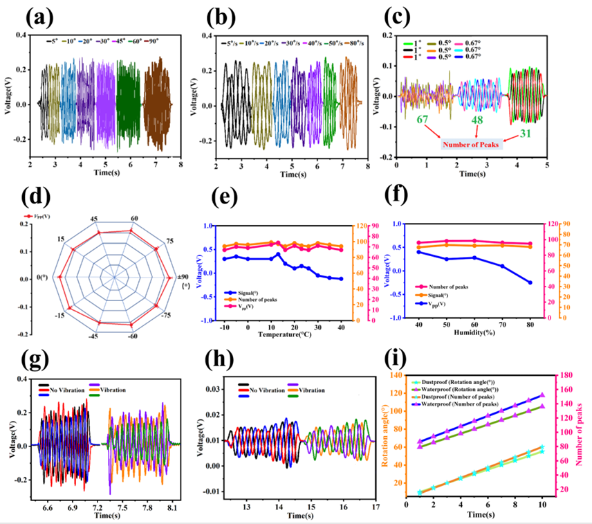 圖2所示實驗結果表明,SFRTAS 具有卓越的穩定性、良好的電輸出性能以及長期工作穩定性。實現了傳感精度達到0.188 mm,靈敏度達到7.69 P·mm-1,角度精度達到0.5°,抗外界環境干擾能力強。團隊研制的自驅動仿形傳感器可準確、快速、連續感知地面起伏變化,為農機裝備仿形精準作業提供新方案。