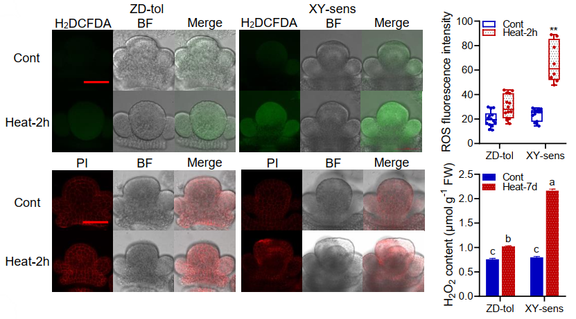 近日,農學院劉鵬教授課題組在The Plant Journal發表了題為“Inhibiting reactive oxygen species production mitigates endoplasmic reticulum damage in florets of developing maize ears under heat stress”的研究論文。系統揭示了高溫脅迫后活性氧爆發引起內質網應激從而抑制小花發育的新機制。山東農業大學劉鵬教授為本文通訊作者,博士研究生王慧琴為第一作者。