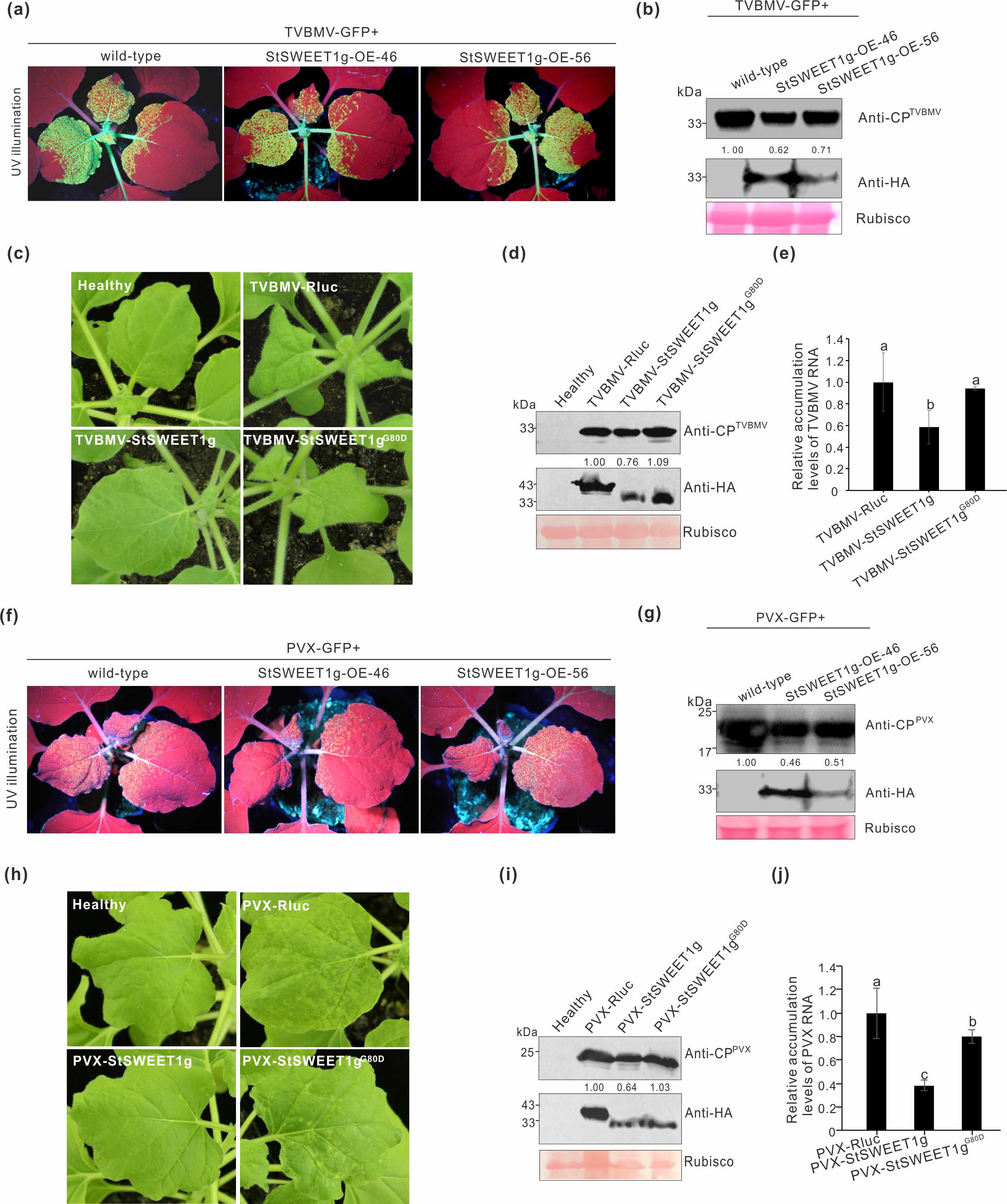 圖 StSWEET1g抑制TVBMV和PVX侵染