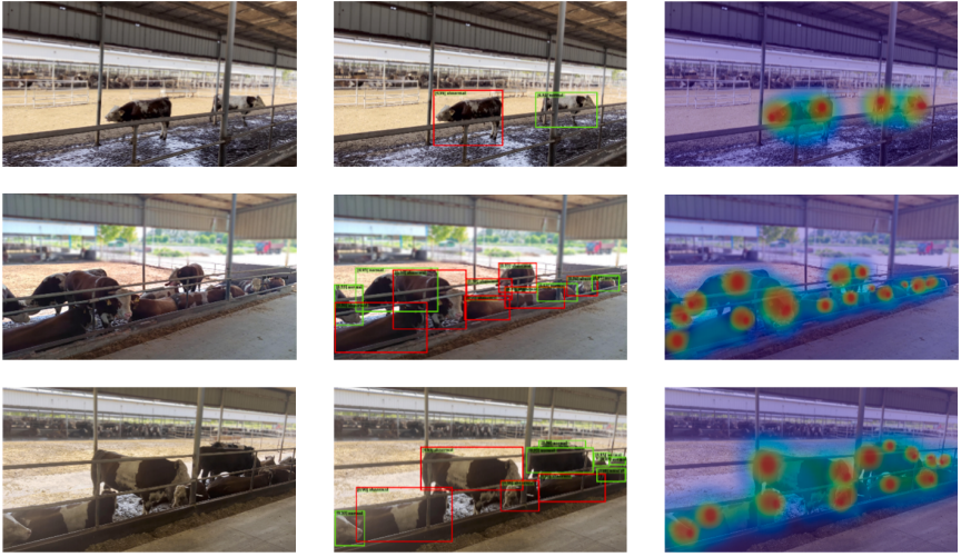 肉牛的健康監測是推動肉牛行業向“高效、安全、可持續”轉型的關鍵支撐。在健康監測中,呼吸急促在牛中常與熱應激、呼吸道疾病或代謝異常相關,流涎行為常與口腔疾病、中毒或神經系統異常,所以對呼吸急促和流涎行為的檢測較為重要。然而,肉牛養殖密度大、遮擋嚴重,現有算法存在檢測精度低、計算冗余等問題。