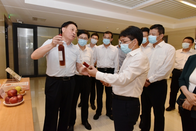 鄧云鋒參觀學校校史館,調研小麥育種全國重點實驗室、小麥遺傳改良及基因組學團隊實驗室和果樹種質資源與遺傳育種團隊實驗室,詳細了解學校辦學治校、人才培養、科研創新、成果轉化等情況,聽取學校主題教育及“雙一流”建設成效匯報,對學校在科學研究、學科建設、人才培養等方面取得的成就給予充分肯定。他指出,長期以來,山東農業大學矢志為國育才、持續探索創新,為國家經濟社會建設和地方發展作出重要貢獻。希望學校深入學習貫徹習近平總書記關于教育的重要論述,主動與國內外高校、科研院所開展務實合作,聯合開展科技攻關、人才培養、平臺建設等,助力學校“雙一流”建設。要聚焦服務國家糧食安全,推進科產教深度融合,實現教育鏈、人才鏈與創新鏈、產業鏈有機銜接,攜手打造全國乃至全球頂尖的小麥產業研究院,為推動農業強省建設作出更大貢獻。省委、省政府將一如既往支持山東農業大學發展,加強主動服務和要素保障,為學校高質量發展營造良好環境,全力推動學校“雙一流”建設。