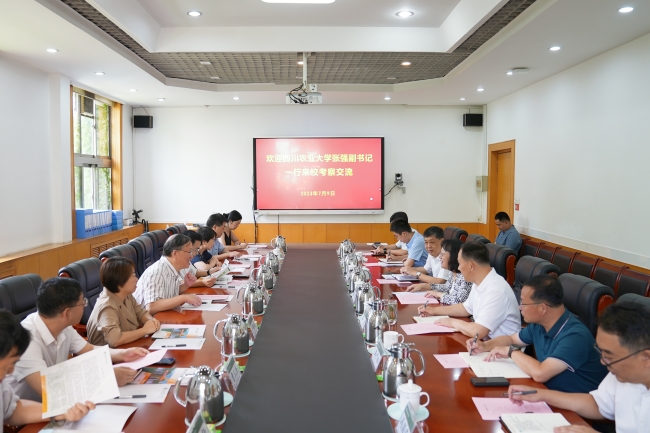 7月9日,四川農業大學黨委副書記張強一行來校訪問交流,雙方就黨建與思政工作、本科及研究生人才培養改革、共青團基層建設與改革等方面進行了深入交流。黨委副書記張然,黨委常委、副校長辛杰,副校長林海,四川農業大學黨委常委、副校長李明洲,黨委常委、副校長盧艷麗參加活動。
