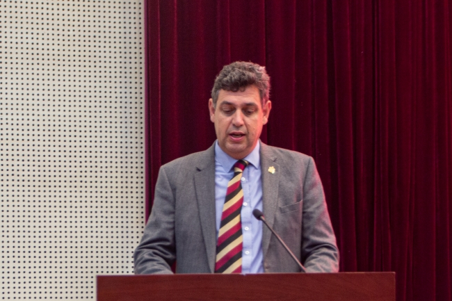 大衛·麥恩在致辭中熱烈歡迎新同學加入兩校合作辦學大家庭,感謝山東農大提供寶貴的機會,讓他有幸在中國泰安歡迎英國皇家農業大學的學生。他期待同學們通過四年大學的學習,未來能夠在國際舞臺引領食品、土地管理、環境等學科領域行業變革、政策創新、企業發展,以合作交流拓寬國際視野、以學術造詣開啟智慧之門。