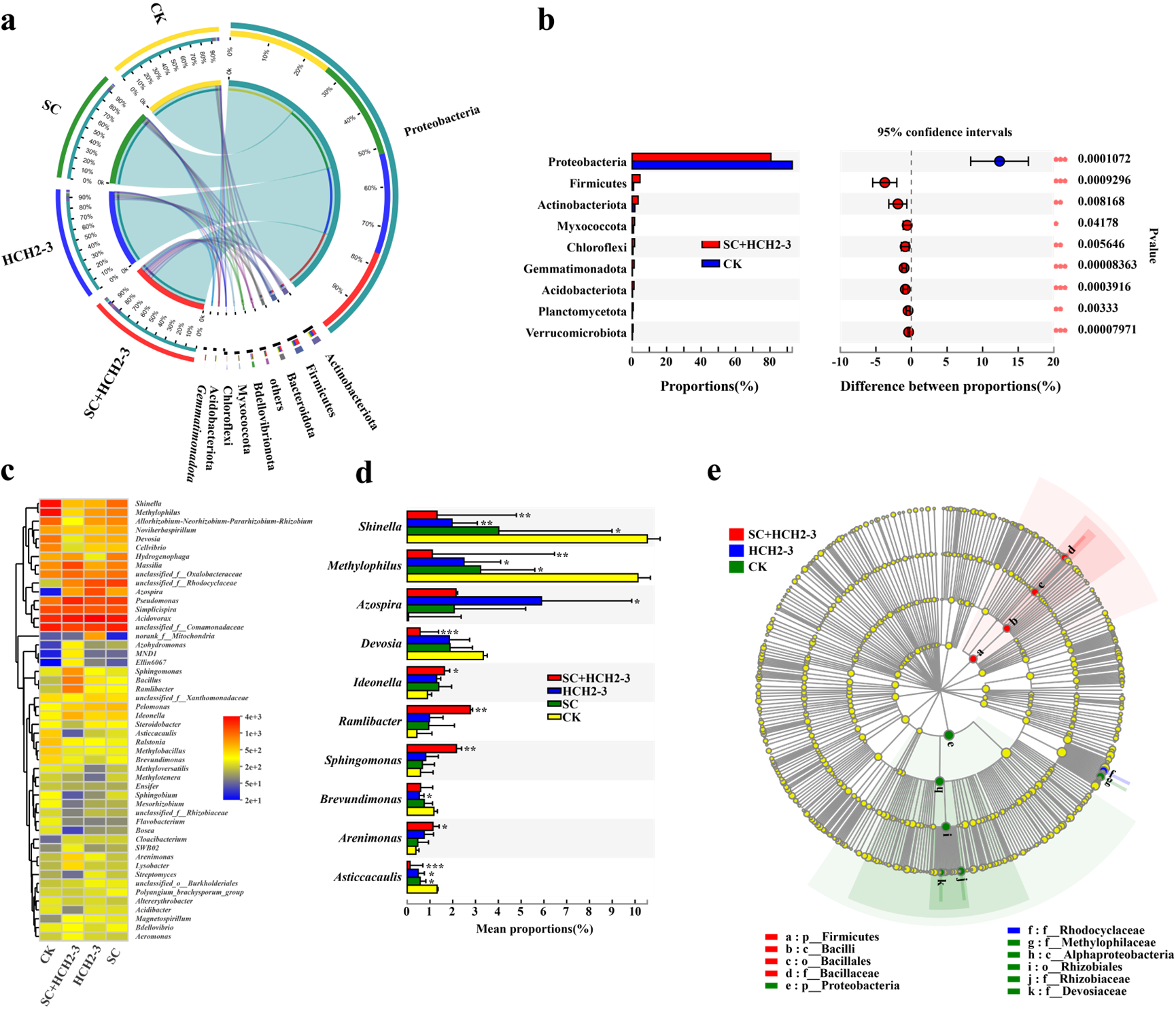 研究結果表明,施用廢棄海藻堆肥與根際有益細菌后,可顯著減輕土壤鹽分對番茄幼苗的損害,促進其正常生長發育。廢棄海藻堆肥與根際有益細菌顯著改善了濱海鹽漬土壤的化學性質、酶活性以及微生物群落,其中,變形菌門、放線菌門以及厚壁菌門成為優勢菌群。這一研究結果對解決和改善目前土壤鹽漬化、優化作物種植模式提供了理論依據與技術支撐。