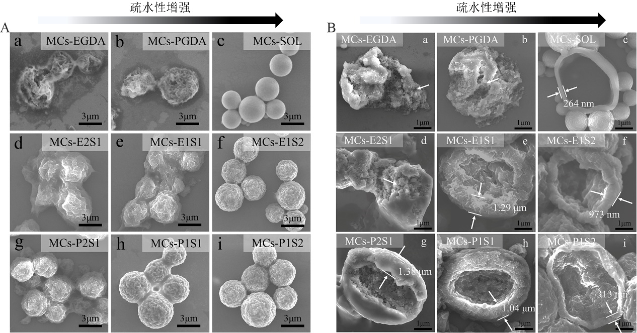 圖1. 不同親水性溶劑制備的噻唑膦微囊形貌